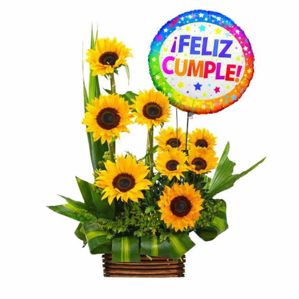 Caja Primaveral en Rosa y Girasoles Radiantes