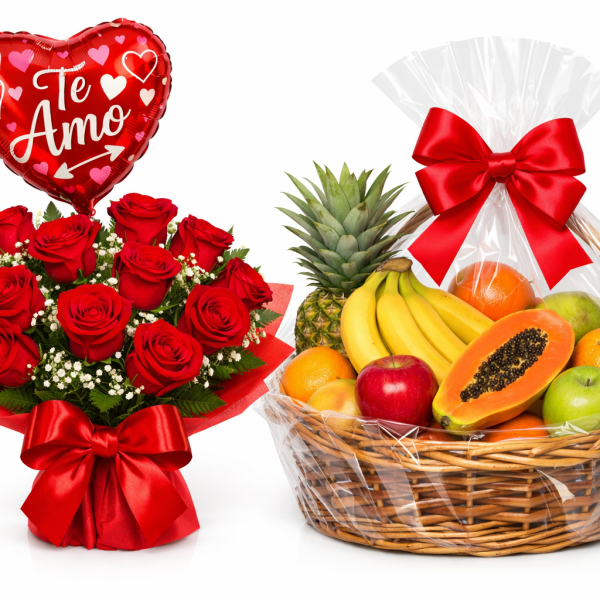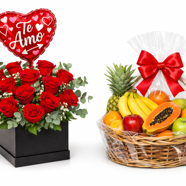 Esta hermosa cesta incluye una selección de frutas cuidadosamente elegidas: banana, piña, papaya, naranja y manzana, ofreciendo una combinación perfecta de sabor y frescura en cada bocado.