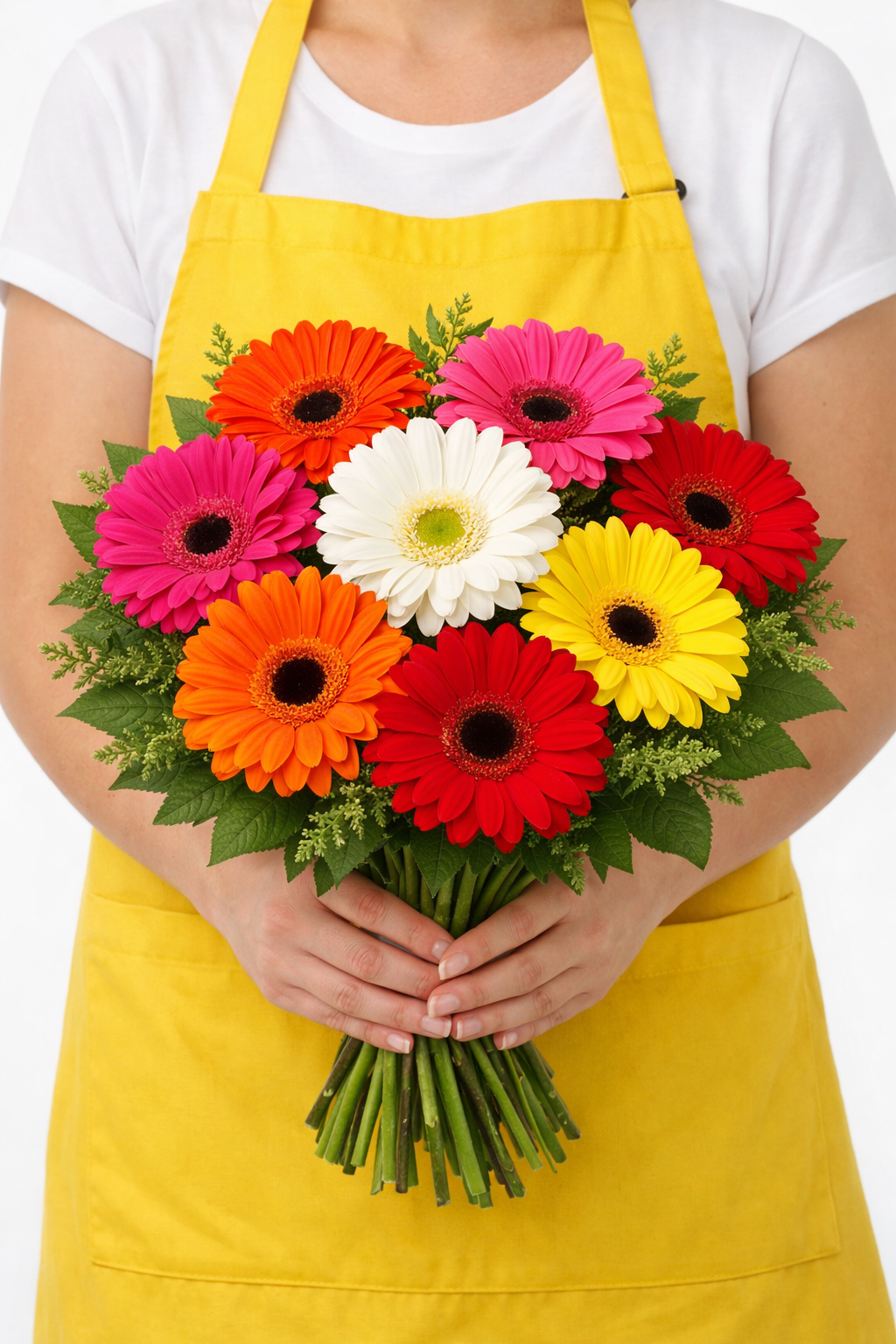 Un ramillete vibrante y lleno de vida compuesto por 12 gerberas en colores surtidos, perfectas para transmitir alegría, energía y positividad.