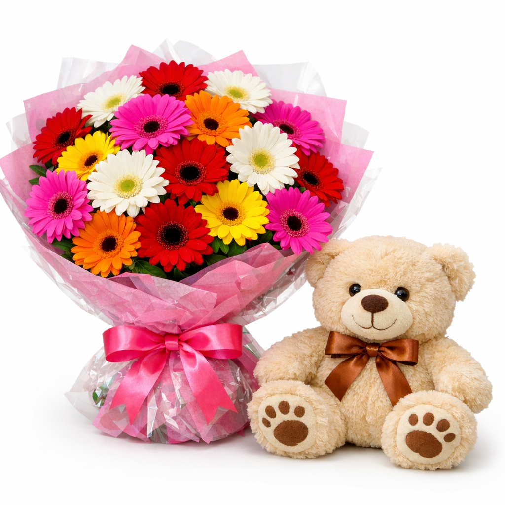 🌸 Ramillete de 24 Gerberas con Peluche 🧸